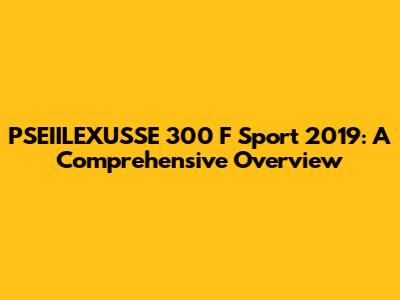 PSEIILEXUSSE 300 F Sport 2019: A Comprehensive Overview