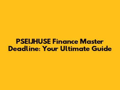 PSEIJHUSE Finance Master Deadline: What You Need To Know