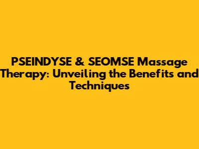 PSEINDYSE & SEOMSE Massage Therapy: Benefits & Techniques