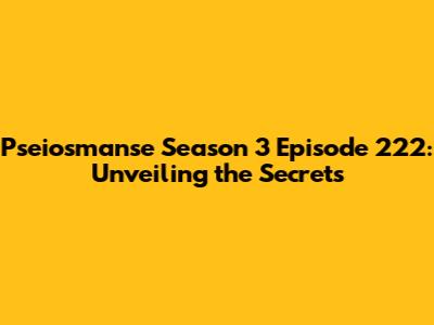 Pseiosmanse Season 3 Episode 222: Recap & Analysis