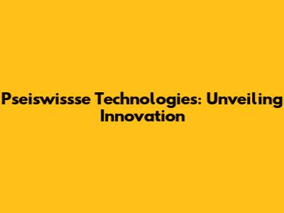 Pseiswissse Technologies: Unveiling Innovation