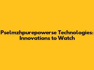 Pselmzhpurepowerse Technologies: Innovations To Watch