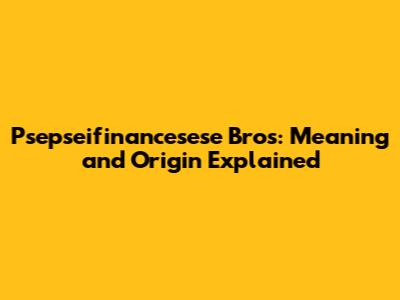 Psepseifinancesese Bros: Meaning And Origin Explained