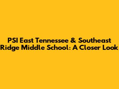 Let's dive into what makes PSI East Tennessee and Southeast Ridge Middle School tick! If you're a parent, student, or just someone curious about education in this region, you've come to the right place. We're going to break down everything from academics to extracurriculars, giving you a comprehensive overview of these two institutions. Forget sifting through endless web pages; we've got the details you need right here. Whether you're considering enrolling your child or simply want to know more about the local educational landscape, stick around – we're about to get started!