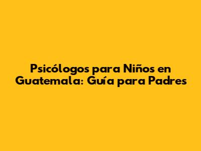 Psicólogos Para Niños En Guatemala: Guía Para Padres