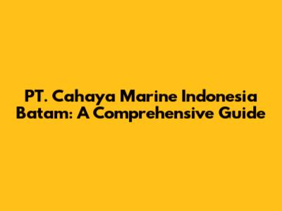 PT. Cahaya Marine Indonesia Batam: Your Guide