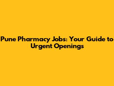 Pune Pharmacy Jobs: Your Guide To Urgent Openings