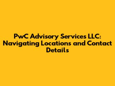 PwC Advisory Services LLC: Locations And Contact Information