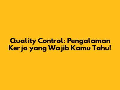 Quality Control: Pengalaman Kerja Yang Wajib Kamu Tahu!