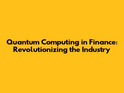 Quantum Computing In Finance: Revolutionizing The Industry