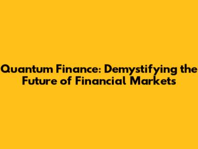 Quantum Finance: Demystifying The Future Of Financial Markets