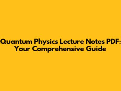 Quantum Physics Lecture Notes: Your PDF Guide