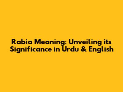 Rabia Meaning: Unveiling Its Significance In Urdu & English