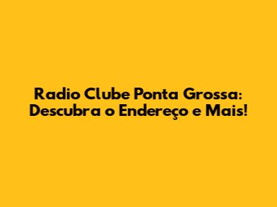 Radio Clube Ponta Grossa: Descubra O Endereço E Mais!