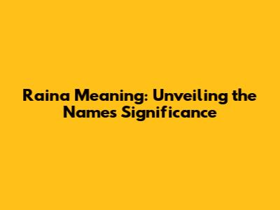 Raina Meaning: Unveiling The Name's Significance