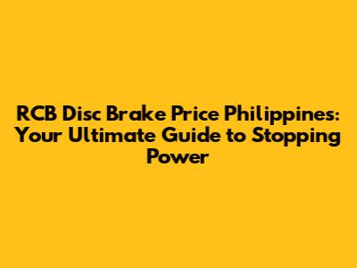 RCB Disc Brake Prices In The Philippines: Your Complete Guide