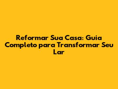 Reformar Sua Casa: Guia Completo Para Transformar Seu Lar