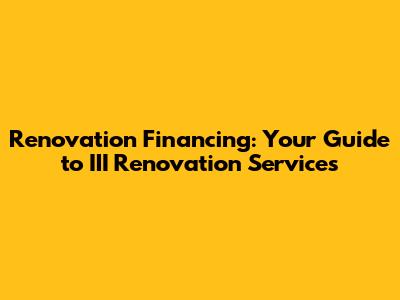 Renovation Financing: Your Guide To III Renovation Services