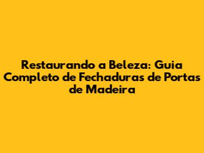 Como Restaurar Fechaduras de Portas de Madeira: Guia Passo a Passo