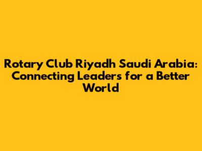 Rotary Club Riyadh: Connecting Leaders In Saudi Arabia