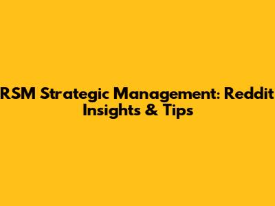 RSM Strategic Management: Reddit Insights & Tips