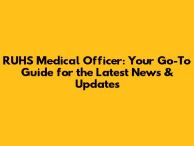 RUHS Medical Officer: Latest News & Updates