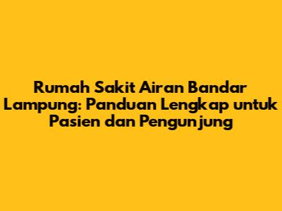 Rumah Sakit Airan Bandar Lampung: Informasi Lengkap & Terbaru