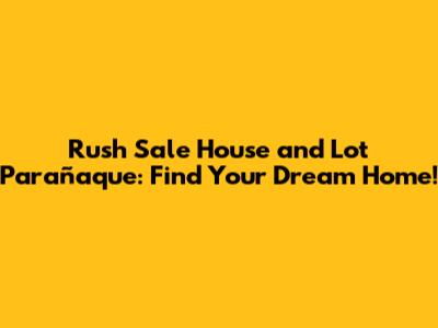 Rush Sale House & Lot Parañaque: Find Your Dream Home!