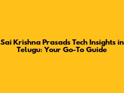 Sai Krishna Prasad's Tech Insights In Telugu: Your Go-To Guide