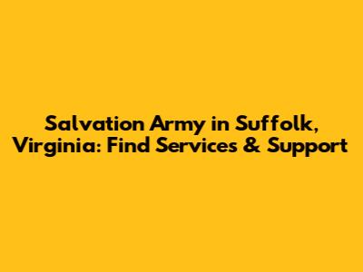 The Salvation Army in Suffolk, Virginia, is a vital resource for those in need, offering a wide range of services and support. By understanding their mission, accessing their services, and supporting their efforts, you can make a positive impact on the community. Whether you need assistance or want to give back, the Salvation Army welcomes you with open arms. Let's work together to build a stronger, more compassionate Suffolk!