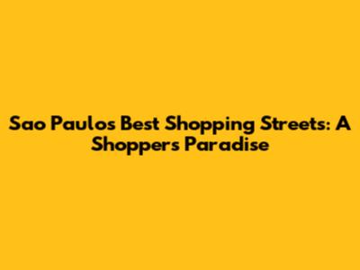 Sao Paulo's Best Shopping Streets: A Shopper's Paradise