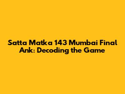 Satta Matka 143: Decoding Mumbai Final Ank Secrets