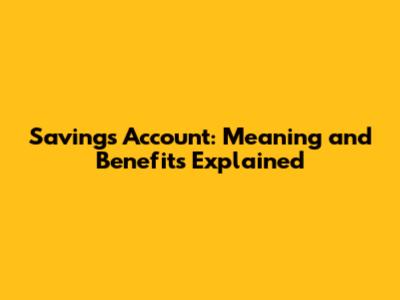 Savings Account: Meaning And Benefits Explained