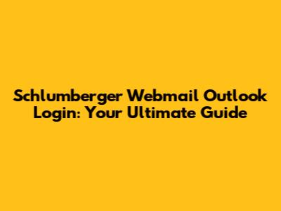 Schlumberger Webmail Outlook Login: A Complete Guide