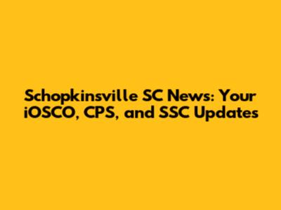 Schopkinsville SC News: Your IOSCO, CPS, And SSC Updates