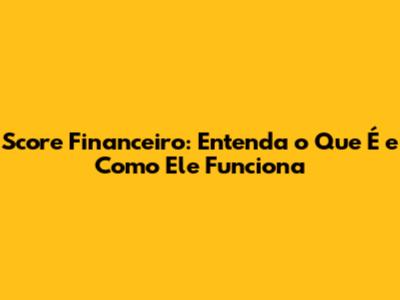 O Que é Score Financeiro?