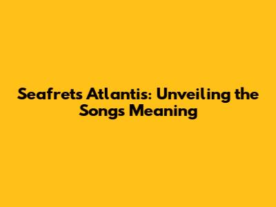 Seafret's Atlantis: Unveiling The Song's Meaning