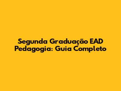 Segunda Graduação EAD Pedagogia: Guia Completo