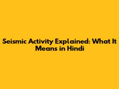 Seismic Activity Explained: What It Means In Hindi