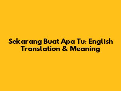 Sekarang Buat Apa Tu: English Translation & Meaning