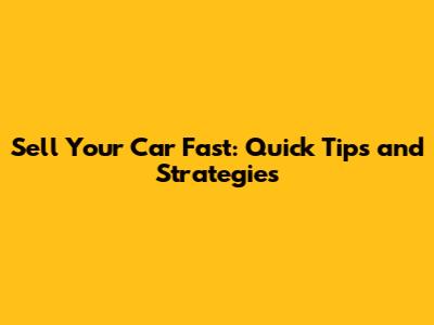 Sell Your Car Fast: Quick Tips And Strategies