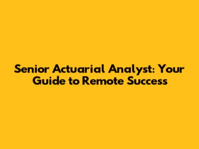 Senior Actuarial Analyst: Your Guide To Remote Success