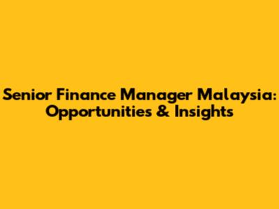 Senior Finance Manager Malaysia: Opportunities & Insights