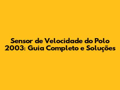 Sensor De Velocidade Do Polo 2003: Guia Completo E Soluções