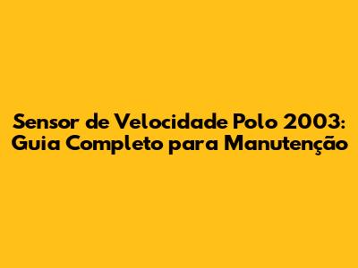 Sensor De Velocidade Polo 2003: Guia Completo Para Manutenção