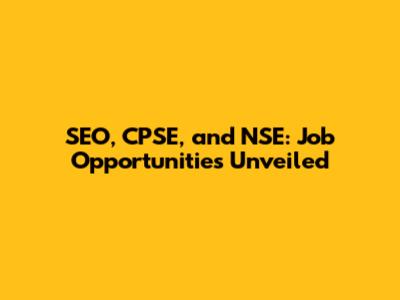 SEO, CPSE, And NSE: Job Opportunities Unveiled