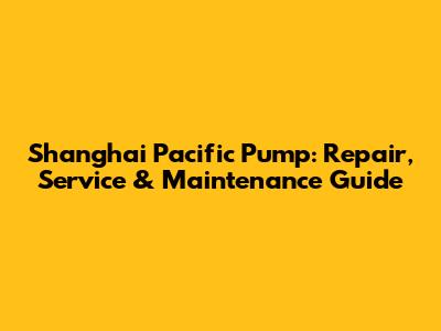 Shanghai Pacific Pump: Repair, Service & Maintenance Guide