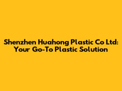 Hey guys! Ever find yourself in a bind, searching high and low for the perfect plastic solution? Well, look no further! Today, we’re diving deep into Shenzhen Huahong Plastic Co Ltd, a company that might just be the answer to all your plastic needs. Whether you're in manufacturing, packaging, or any other industry that relies on high-quality plastic products, understanding what Shenzhen Huahong brings to the table is super important. Let's get started and explore why they should be on your radar!