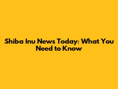 Shiba Inu News Today: What You Need To Know