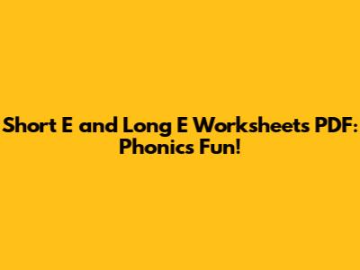 Short E And Long E Worksheets PDF: Phonics Fun!